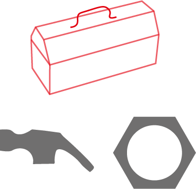 Om te beginnen heb ik een tijdje gezocht naar afbeeldingen op het internet van gereedschapskisten tot ik de variant vond die ik wilde in de positie waarin ik het logo wilde maken. Deze afbeelding heb ik vervolgens gekopieerd en geplakt in Adobe Illustrator. Omdat de kist bestaat uit rechte lijnen kon ik met de pen tool simpelweg op de juiste plek een lijn trekken.