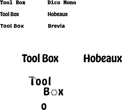 Voor de keuze van het lettertype heb ik een tijdje verschillende opties bekeken en uiteindelijk bleven daar 3 van over. Zoals gezegd bij het kopje lettertype heb ik de tweede optie gekozen omdat het goed werkt in dit logo. Het is goed aan te passen en goed te schalen. Vervolgens heb ik de hamer over de bovenkant van de t geplaatst en de o vervangen door de moer.